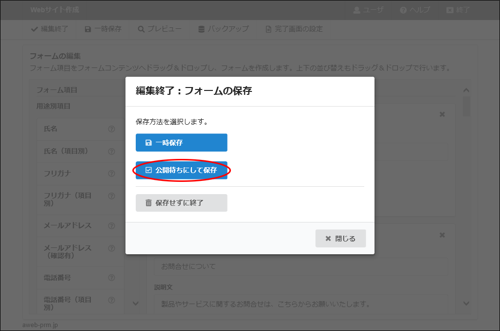 編集終了:フォームの保存画面が表示されます。