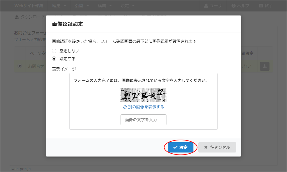| 設定する | 画像認証を設定します。 |