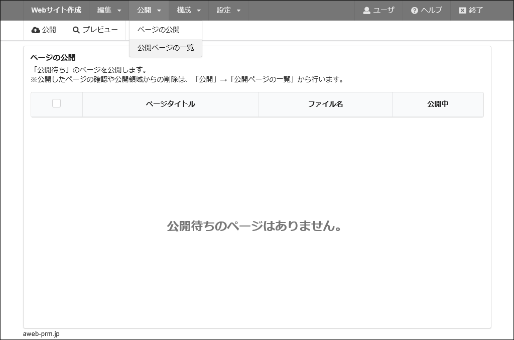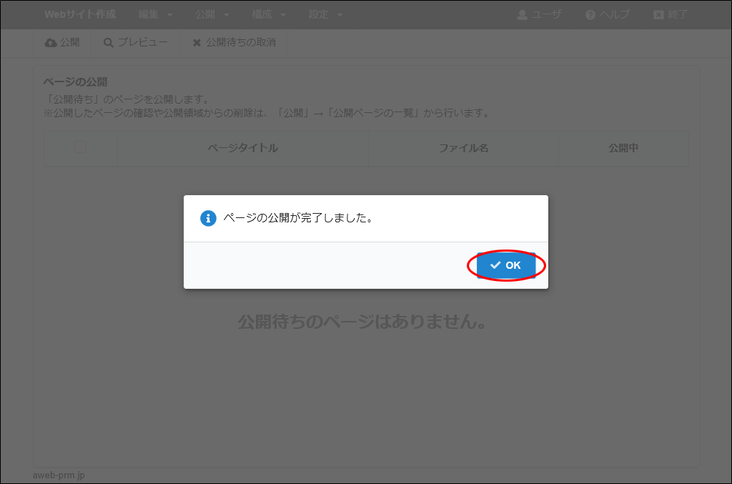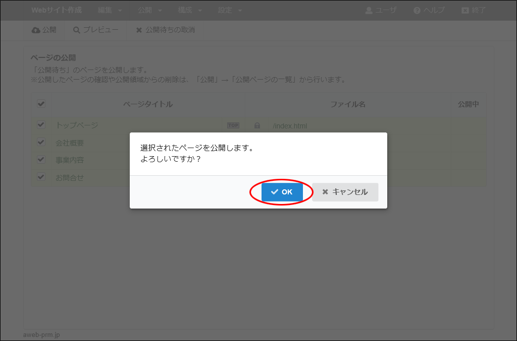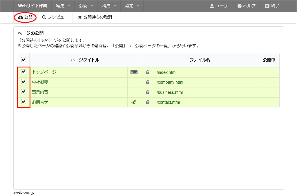 step27 公開するページを選択し、「公開」をクリックします。