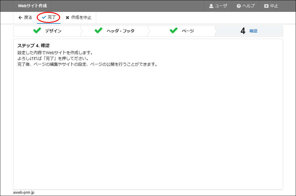 Webサイト作成ウイザード画面は、以下の条件の場合のみ表示されます。それ以外の場合は、表示されません。