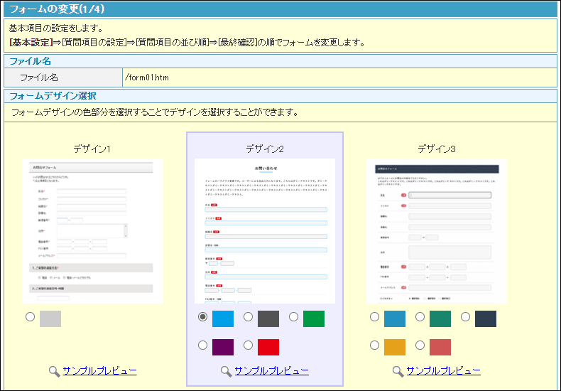 step2 フォームの変更(1/4)画面が表示されます。