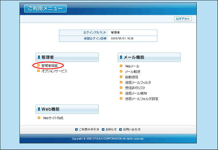 | メールアドレス | 「管理者メールアドレス(ログインID)」を入力 |