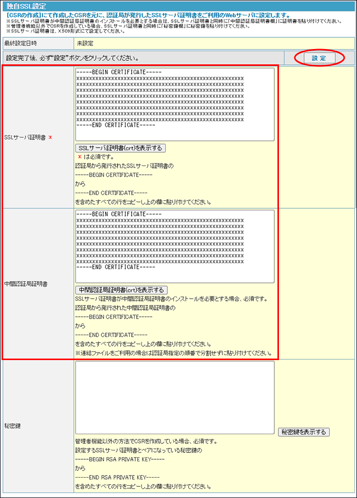注意秘密鍵・クロスルート方式用中間認証局証明書は入力しません
