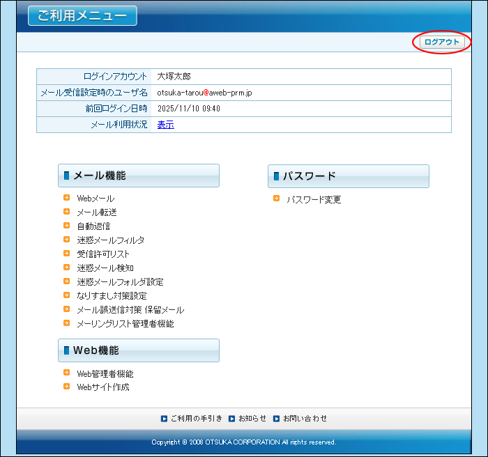 再度ログインする場合は、「ログイン」ボタンをクリックします。