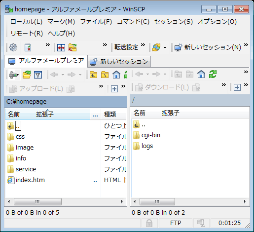 画面左側:ローカル(お客様ご利用のパソコン) 画面右側:サーバ