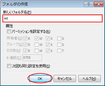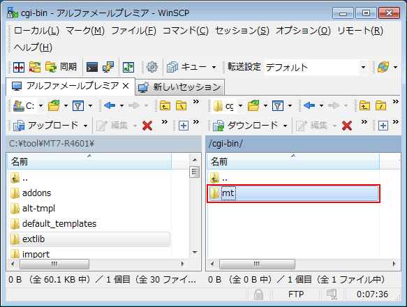 サーバ側(右画面)「mt」フォルダをダブルクリックします。