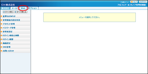 ご利用メニューが表示されます。「管理者機能」をクリックします。